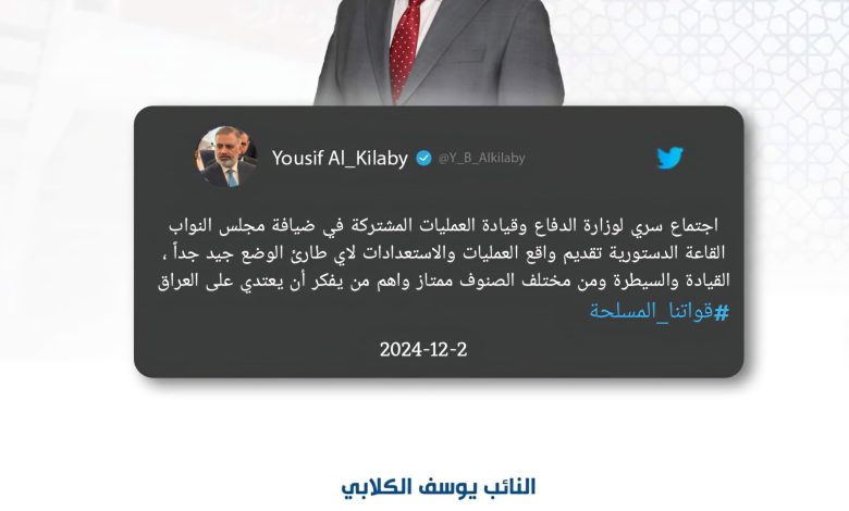 اجتماع سري لوزارة الدفاع وقيادة العمليات المشتركة في ضيافة مجلس النواب القاعة الدستورية تقديم واقع العمليات والاستعدادات لاى طارئ الوضع جيد جداً ، القيادة والسيطرة ومن مختلف الصنوف ممتاز واهم من يفكر أن يعتدي على العراق